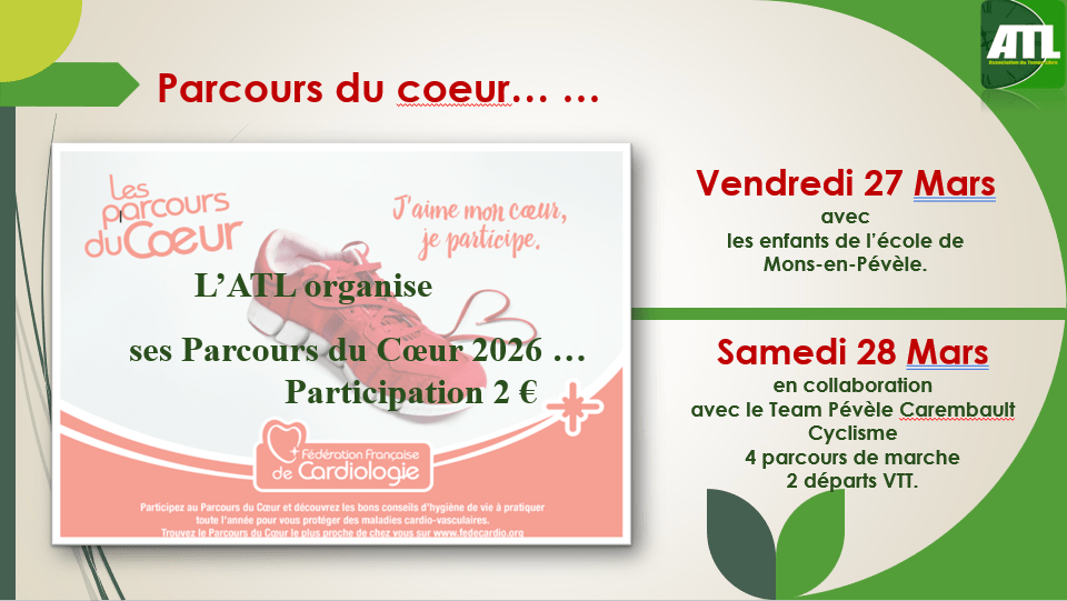 le Vendredi 27 MARS : Parcours du Coeur des enfants avec l’école de Mons-en-Pévèle.