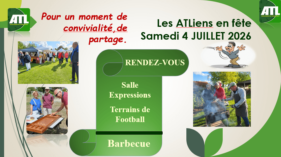 Elles nécessitent une adhésion à l’ ATL (20 €) et en fonction un règlement de préférence par virement, par carte bancaire ou par chèque adressé à Mr Jacques FLOND 503 rue du Saut du Loup 59710 MERIGNIES.